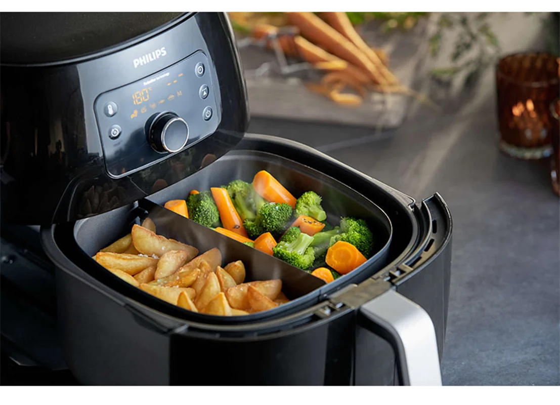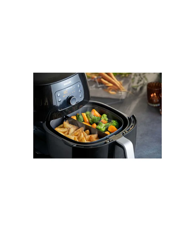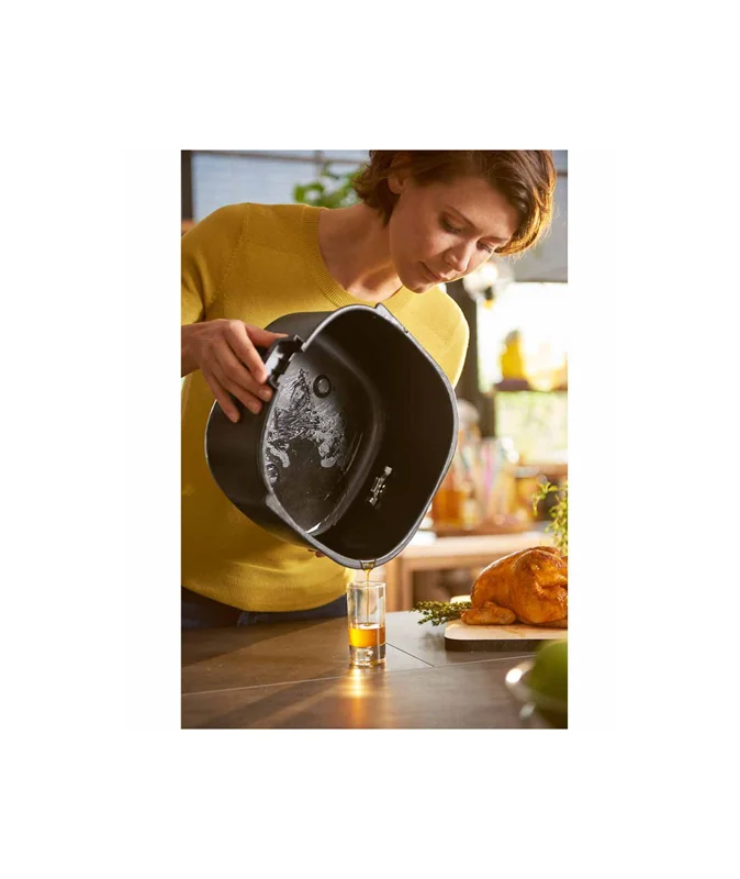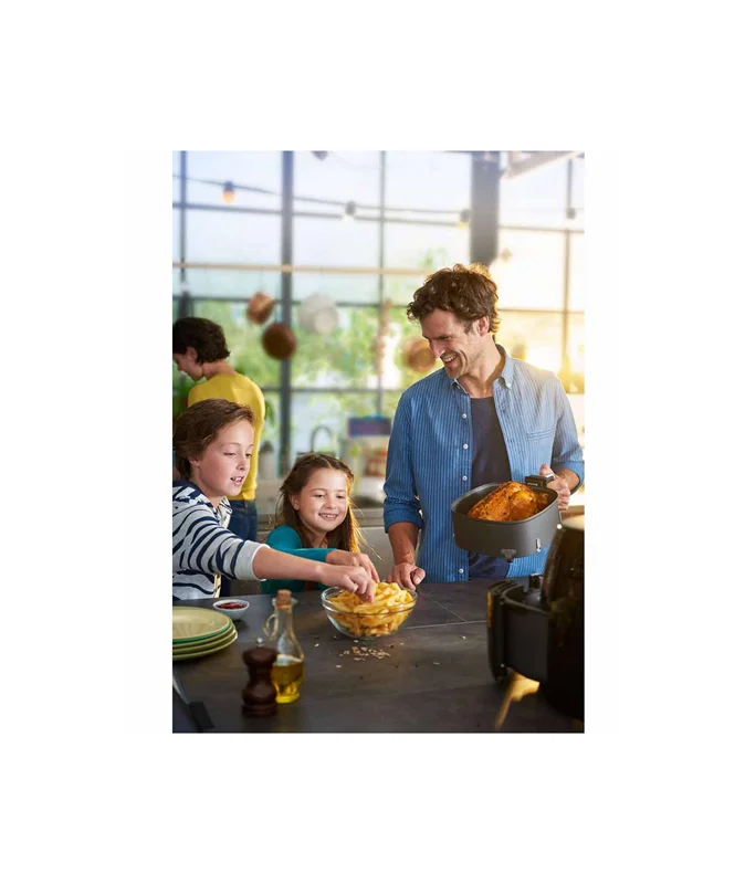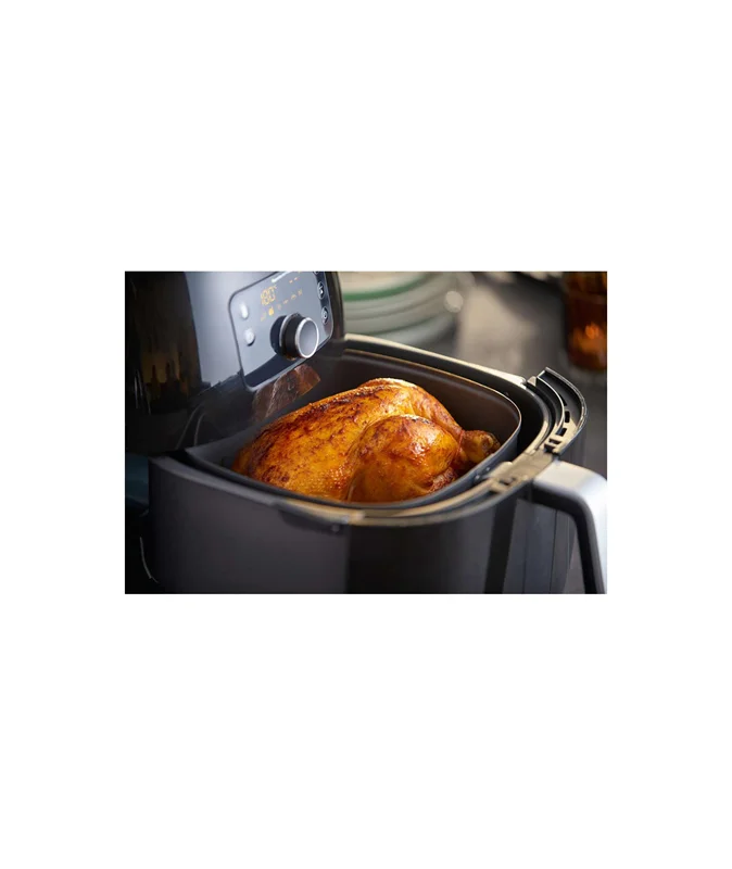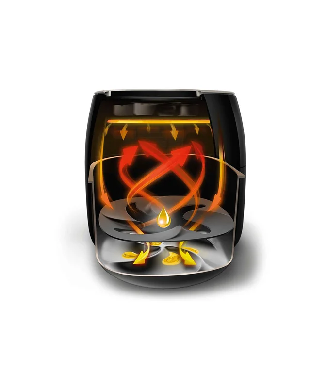 سبد مخصوص این دستگاه در اندازه بزرگ و با گنجایش ۱.۴ کیلوگرم طراحی شده که حجم بالایی از مواد غذایی را در خود جای میدهد. پنل این دستگاه به صورت لمسی بوده و تنها با فشار دست ، میتوان برنامه دلخواه را انتخاب نمود یا میزان حرارت و زمان پخت را تنظیم کرد. پس از اتمام زمان پخت ، دستگاه توسط بوقی شما را مطلع میسازد و سپس به صورت خودکار خاموش میشود. با نصب برنامه Airfryer در موبایل خود میتوانید از صد ها دستور پخت غذا توسط این سرخ کن اطلاع یابید. قطعات دستگاه را میتوان درون ماشین ظرفشویی شستشو داد.