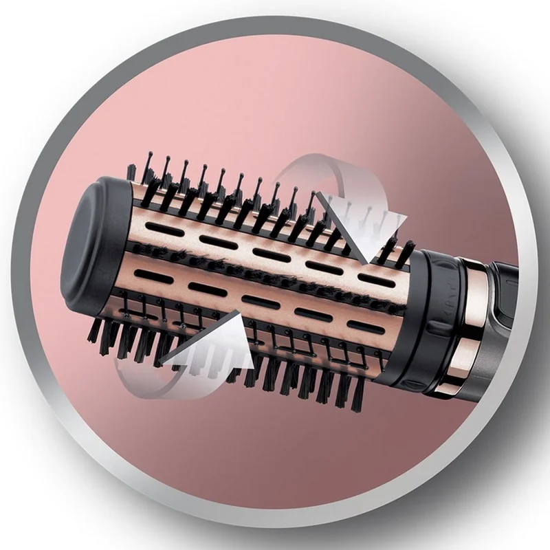برای راحتی شما سر سشوار برس دار رمینگتون مدل AS8810 به صورت چرخشی طراحی شده است تا شما علاوه بر استفاده به صورت ثابت بتوانید، از حالت چرخش به چپ و چرخش به راست دستگاه استفاده نمایید. در داخل بسته سشوار برس دار چرخشی رمینگتون مدل AS8810 دو برس چرخشی به قطر های 40 و 50 میلیمتری وجود دارد ، که شما میتوانید حالت های مختلفی را به موهای خود دهید . همچنین شانه ای داخل این محصول وجود دارد که برای باز کردن گره موهایتان میتوانید از آن استفاده نمایید.
