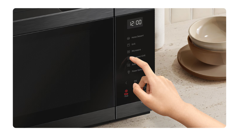 مایکروویو سامسونگ مدل DG5525 دارای ۱۵ برنامه Auto Cook برای غذاهای رایج و حالت Home Dessert برای پخت کیک، براونی و پودینگ، بدون نیاز به فر، خلاقیت در آشپزی را آسان میکند.چهار حالت یخزدایی سریع برای گوشت، مرغ، ماهی و نان/کیک با حفظ طعم و مواد مغذی.کافیست نوع و وزن را وارد کنید تا دستگاه زمان و توان مناسب را انتخاب کند.