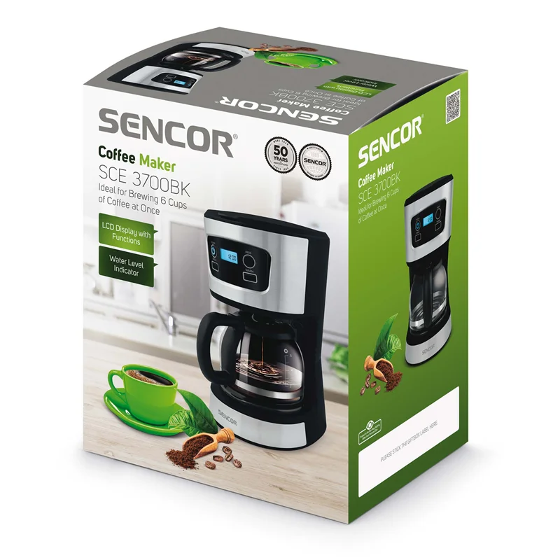 قهوه ساز مدل SCE 3700BK برای جلوگیری از گرم شدن بیش از حد مجهز به فیوز حرارتی است. فیوز حرارتی از نکات ایمنی این قهوه ساز بوده که از خسارات بسیاری جلوگیری به عمل می آورد. قهوه ساز مدل SCE 3700BK به محض تمام شدن مراحل ساخت قهوه، به صورت اتوماتیک به حالت KEEP WARM در می آید. زمانی که این قهوه ساز در حالت KEEP WARM قرار می گیرد، به مدت 40 دقیقه توانایی گرم نگهداشتن نوشیدنی را دارد. بنابراین می توان گفت که قهوه ساز مدل SCE 3700BK علاوه بر درست کردن نوشیدنی قادر به گرم نگهداشتن آن نیز می باشد. همچنین قهوه ساز SENCOR از نعمت صفحه نمایش LCD بر خوردار است. شما می توانید زمانی را که میل به خوردن نوشیدنی مورد علاقه خود دارید را روی این صفحه نمایش تنظیم کنید. تنها کاری که باید انجام دهید دادن تنظیمات زمان به قهوه ساز سنکور است.