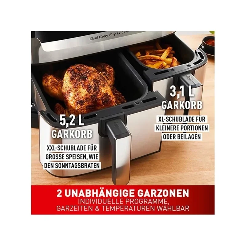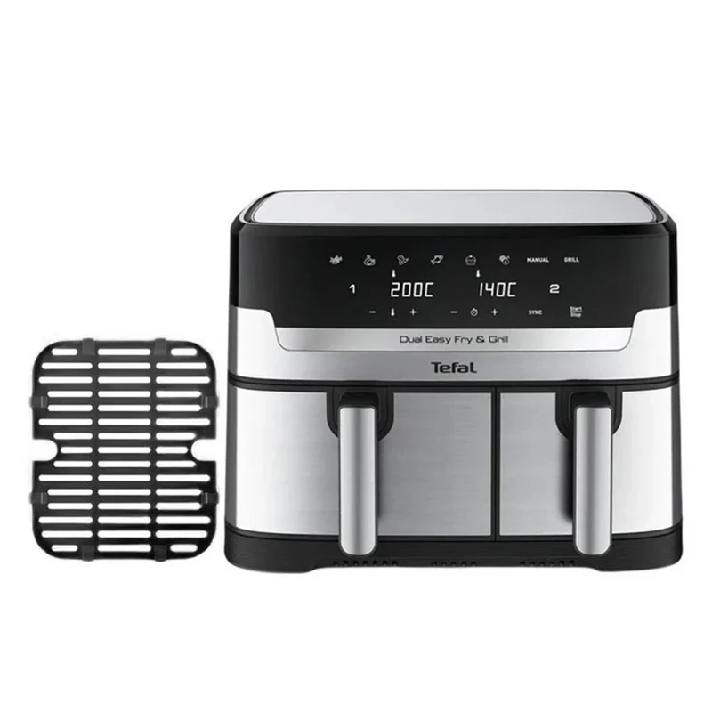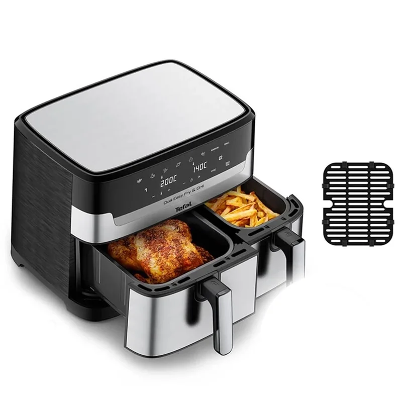 سرخ کن تفال مدل EY905 با بهره گیری از صفحه گریل، پخت و پز بی نظیری را امکانپذیر می سازد. به لطف صفحه گریل می توان به راحتی گوشت آبدار، ماهی و موارد دیگر را با 99 درصد چربی کمتر کباب کرد. با ظرفیت 8.3 لیتر، این سرخ کن می تواند برای 6 تا 8 نفر غذا را در خود جای دهد.