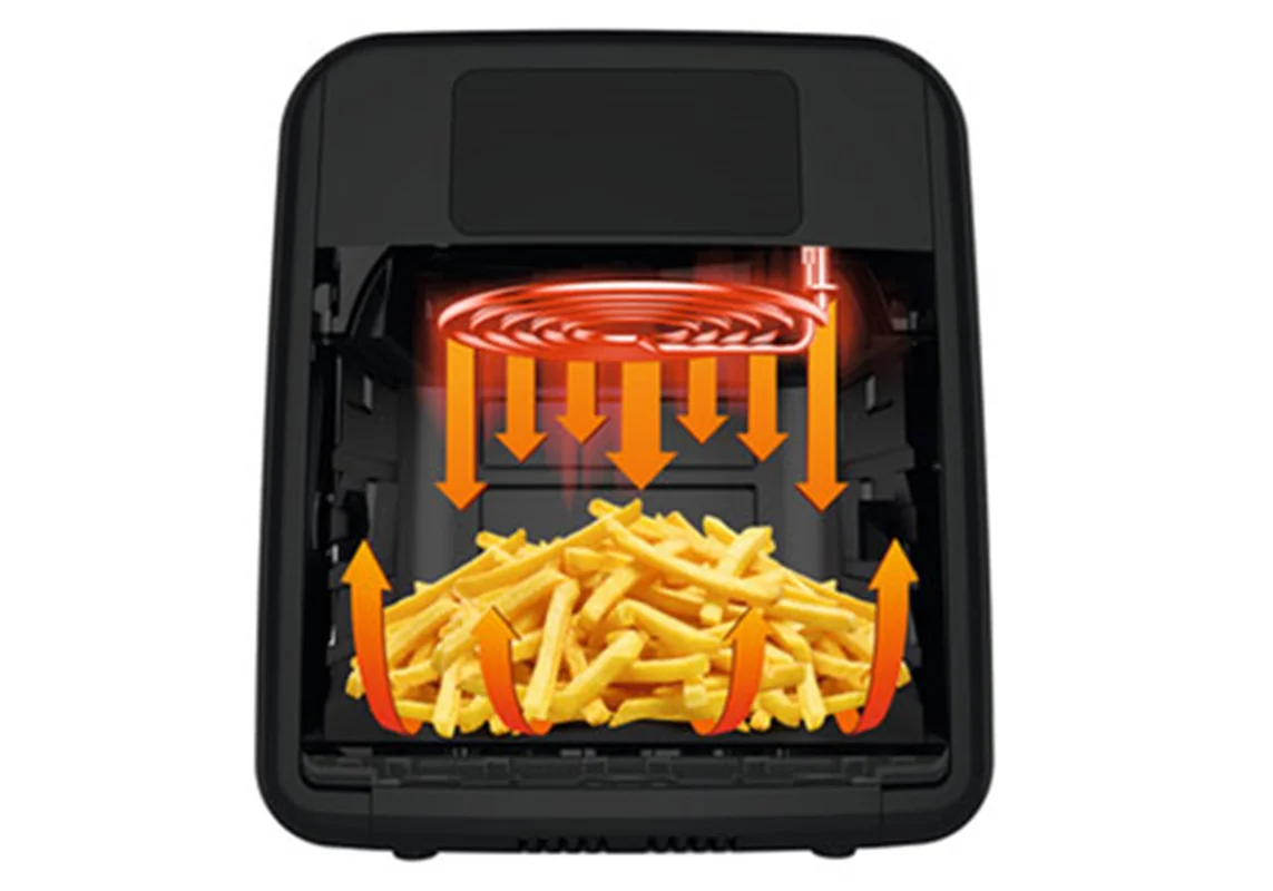 توان این محصول ۲۰۰۰ وات است که امکان سرخ کردن انواع مواد غذایی را با استفاده از برنامههای موجود در منوی کاربری به شما میدهد. دما در این سرخ کن از ۴۵ تا ۲۰۰ درجه سانتیگراد قابل تنظیم است. دمای بالا در حین کار موجب بخار شدن روغن، چربی موجود روی سطح مواد غذایی و رطوبت موجود در آن میشود و با استفاده از فن بهکاربرده شده در دستگاه چربی و حرارت را به گردش در آمده تا مواد غذایی شما را به صورت یک دست آماده کند. با استفاده از المنت به کاربرده شده در این محصول حرارت مورد نیاز برای پخت مواد غذایی تامین میشود.