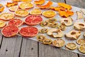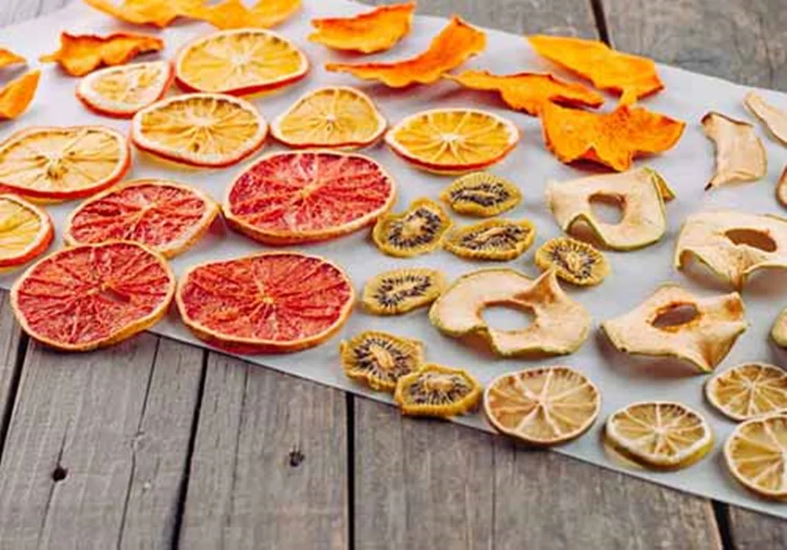 خشک کردن میوهها: ۶ الی ۷ قطعه میوه تازه خود را در داخل دستگاه قرار دهید و برنامه خشک کردن میوهها را انتخاب نمایید، دما روی ۴۵ درجه سانتیگراد تنظیم شده و ظرف مدت ۴ الی ۱۲ ساعت میوههای خشک شده را به شما تحویل میدهد.
