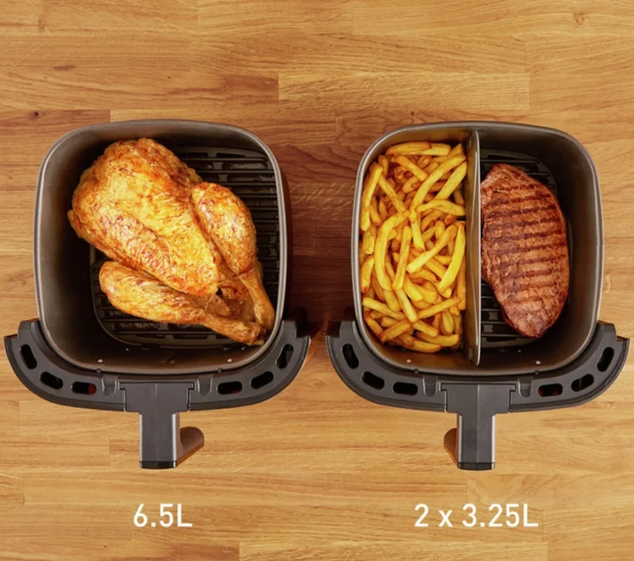 از شام های سریع شب های هفته گرفته تا ضیافت های جشن! تقسیمکننده قابل جابجایی Flexcook سرخ کن تفال مدل EY801D به شما امکان میدهد تا بتوانید دو منطقه را برای طبخ دو غذای مختلف تغییر دهید تا همزمان آماده شوند. فناوری فوق العاده ترد، تعادل کاملی را بین دما و جریان هوای گرم برای دریافت نتایج ترد و طلایی با روغن اضافه کم یا بدون نیاز به افزودن ارائه می دهد.