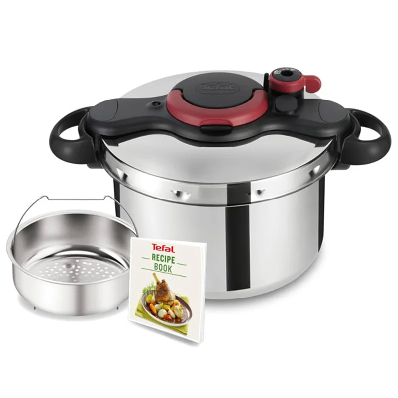 زودپز تفال مدل Clipso Minut Easy P4624966 دارای ظاهری بسیار زیبا و لوکس بوده و رنگ بدنه آن استیل می باشد که نمای بسیار زیبایی را در آشپزخانه شما به ارمغان می آورد. زودپز تفال دارای سبد بخارپز است.