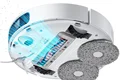 اگر تجربه قبلی استفاده از جارو رباتیک های قبلی را داشته باشید می دانید که هنگام تی کشی اگر بخواهید نتیجه ای قابل قبول از تی کشی ربات داشته باشید باید میزان خروجی آب را حداکثر قرار دهید و با این حساب حداکثر هر بیست دقیقه کارکرد ربات باید مخزن آب آن را پر کنید. در نهایت هم تنها با کشیدن یک پد مرطوب روی زمین لکه های قدیمی باقی می ماند. افراد حساس معمولا به جای استفاده از رباتیک برای تی کشی، شخصازمین را نظافت می کردند. اما با این رباتیک بهترین نتیجه را خواهید گرفت، چون تی کشی در این ربات یعنی چرخش دو پد تی کشی حرفه ای با فشار بالا و سرعت ۱۸۰ دور در دقیقه است. به محض خالی شدن مخزن از مایعات، ربات به ایستگاه بازگشته و مخزن را مجدد پر می کند و به کار خود ادامه می دهد. پس از آن هم به محض نیاز داشتن به شستشو، ربات به داخل ایستگاه خود بازگشته و پدها را کامل می شوید.